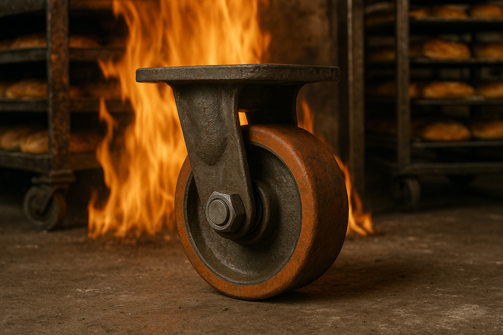 - Cast iron wheels – the go-to option for the harshest, hottest industrial environments, capable of handling sustained heat above 300°C without deforming.